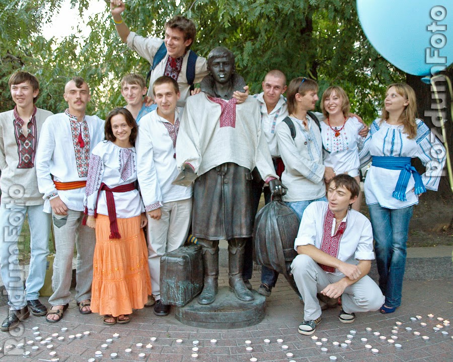 Не обійшлося і без танців: взявшись за руки, усі почали водити хоровод і співати українські пісні. А після святкувань вишиванку зняли, мабуть, до наступних гулянь. Фотогравувались не лише с памятником, але й з файними дівчатами.